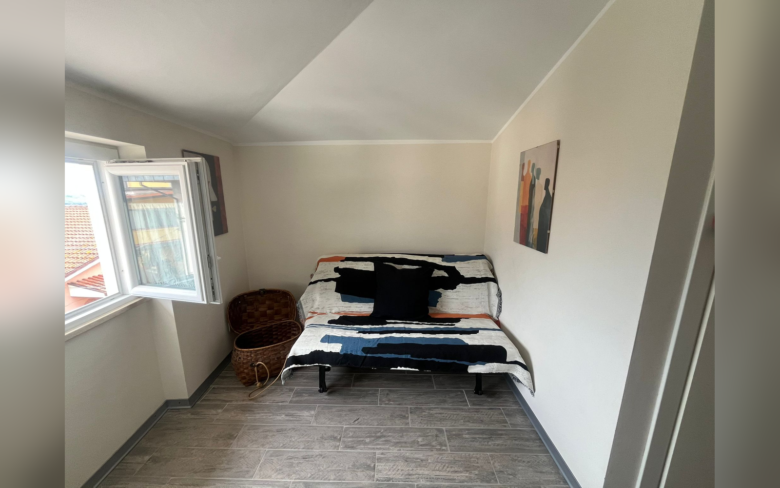 Open space di circa 25 mq con letto matrimoniale e divano letto, ideale per ospitare fino a 4 persone. Dispone di bagno privato, TV e ambienti luminosi e funzionali. L’atmosfera è calda e familiare, perfetta per chi desidera vivere un soggiorno semplice ma autentico, sentendosi parte della casa e del territorio.